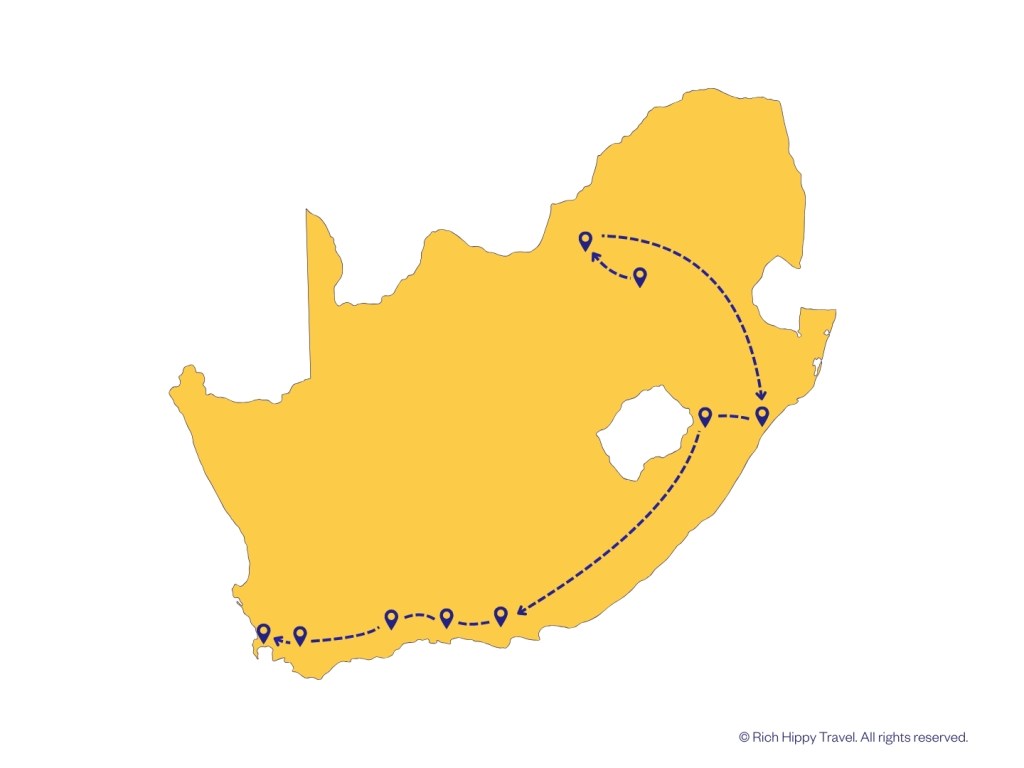 Expect defining moments, from sunrise safaris in a volcanic crater, Khoisan-guided storytelling circles, Zulu rituals illuminated by firelight, cliffside trails above pounding oceans, to the powerful testimony of Robben Island. The pacing is immersive yet fluid, moving between cities, wild lands, and coastal edges with intention.